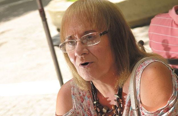 La mujer que ahora luce con más pelo, producto de un implante capilar, y con una tenue tonalidad rubia, hace un pequeño esfuerzo para no llorar.